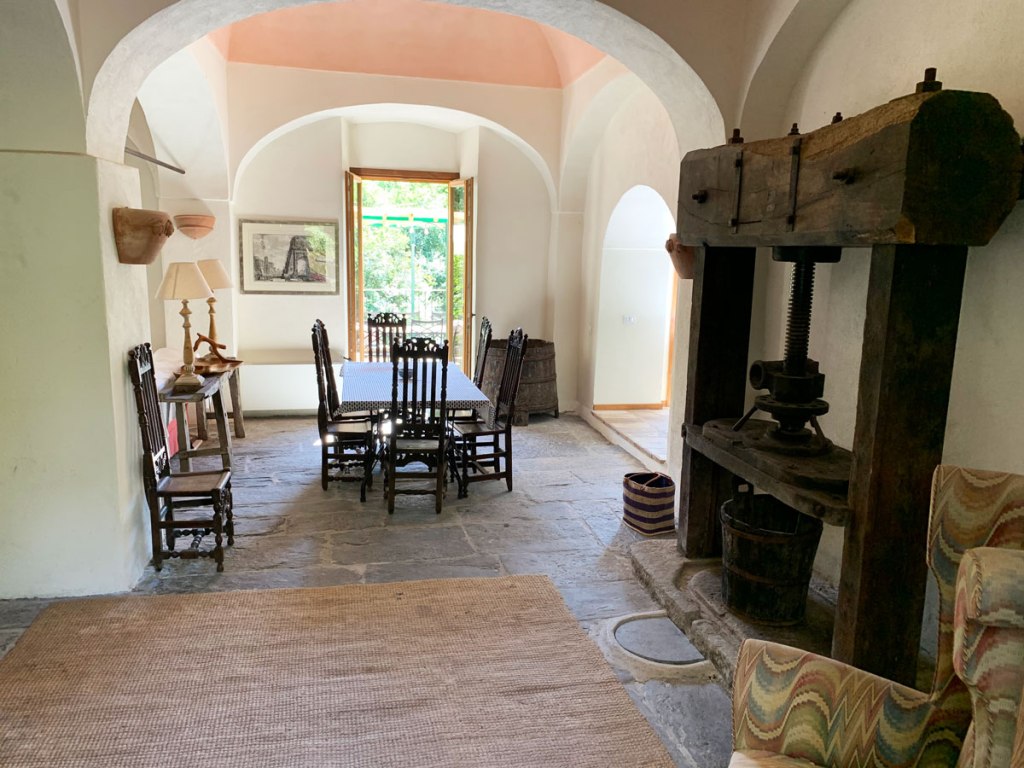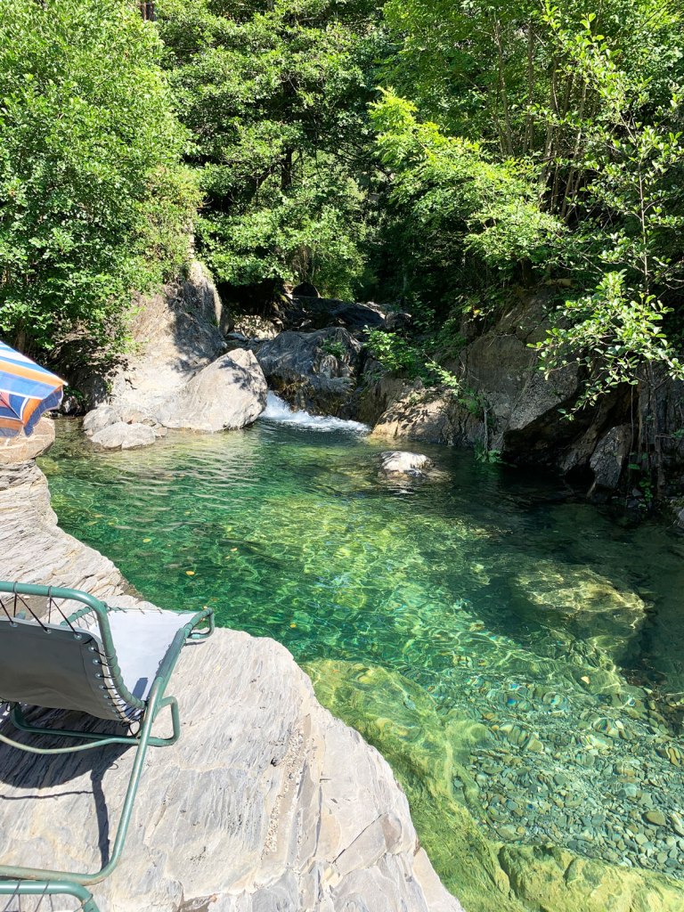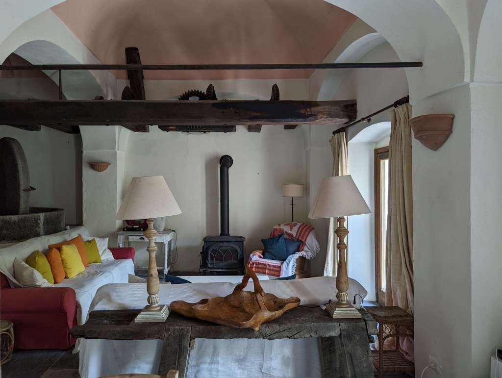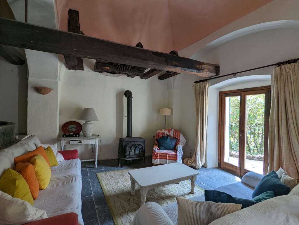 With big comfortable sofas and access to both terraces – one at the front of the house over looking the river and one at the back looking up to the mountains.